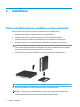 2 Iestatīšana Datora orientācijas maiņa no galddatora uz torņa orientāciju Datoru var lietot torņa orientācijā ar izvēles torņa tipa statīvu, ko var iegādāties no HP. 1. Noņemiet vai atbrīvojiet visas drošības ierīces, kas neļauj atvērt datoru. 2. Izņemiet no datora visus noņemamos datu nesējus, piemēram, USB zibatmiņas disku. 3. Izslēdziet datoru pareizi, izmantojot operētājsistēmu, pēc tam izslēdziet visas ārējās ierīces. 4.