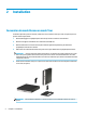 2 Installation Conversion du mode Bureau en mode Tour L'ordinateur peut être posé à la verticale, comme une tour, à l'aide d'un socle pour tour (en option) que vous pouvez acheter auprès de HP. 1. Retirez/désengagez tout périphérique de sécurité qui entrave l'ouverture de l'ordinateur. 2. Retirez tout support amovible de votre ordinateur (clés USB, etc.). 3. Mettez l'ordinateur hors tension sans risque à l'aide du système d'exploitation, puis mettez les périphériques externes hors tension. 4.