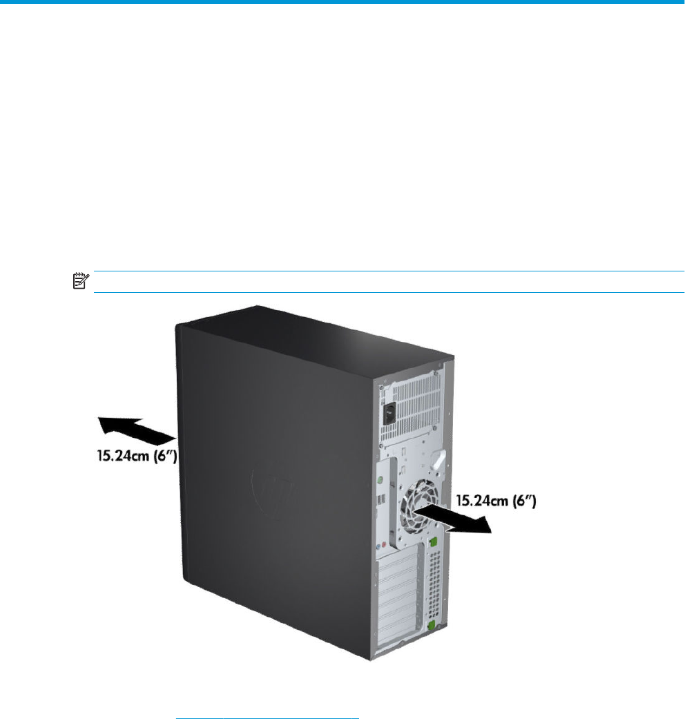 ● Provide at least 15.24 cm (6.00 in) of clearance at the front and back of the computer. (This is the