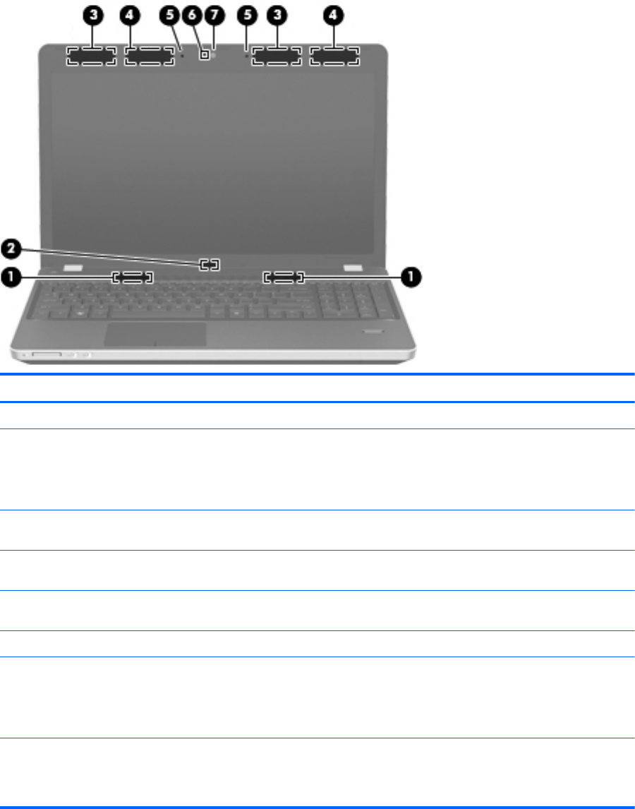 (6) Voyant de la webcam (certains modèles) Allumé : la webcam est en cours d'utilisation.