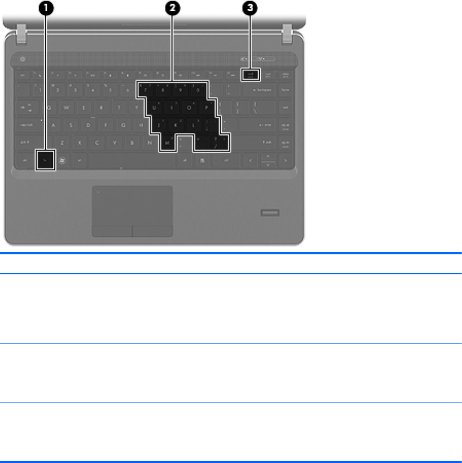 (1) Touche fn Permet d'activer et de désactiver le pavé numérique interne