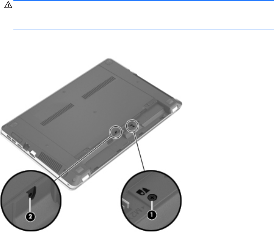 2. Retirez la vis de sécurité rangée dans le compartiment de la batterie (1) et insérez-la dans le