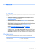 1 Welkom ● Informatie zoeken Nadat u de computer gebruiksklaar hebt gemaakt en hebt geregistreerd, moet u de volgende stappen uitvoeren: ● Configureer HP QuickWeb: voor onmiddellijke toegang tot internet, widgets, e-mail en communicatieprogramma's zonder dat het hoofdbesturingssysteem wordt gestart. Raadpleeg HP QuickWeb op pagina 24 voor meer informatie. ● Maak verbinding met internet: configureer een bekabeld of draadloos netwerk waarmee u verbinding kunt maken met internet.