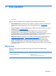 1 Hoş Geldiniz ● Bilgi bulma Bilgisayarı kurup kaydettirdikten sonra aşağıdaki adımları gerçekleştirmeniz önemlidir: ● HP QuickWeb'i kurun—Internet'e, pencere öğelerine, e-postaya ve iletişim programlarına ana işletim sisteminizi başlatmadan hemen erişin. Daha fazla bilgi için, bkz. HP QuickWeb sayfa 21. ● Internet'e bağlanın—Internet'e bağlanabilmek için kablolu veya kablosuz ağınızı kurun. Daha fazla bilgi için, bkz. Ağ iletişimi sayfa 17.