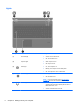 (1) TouchPad on/off button Turns the TouchPad on and off.