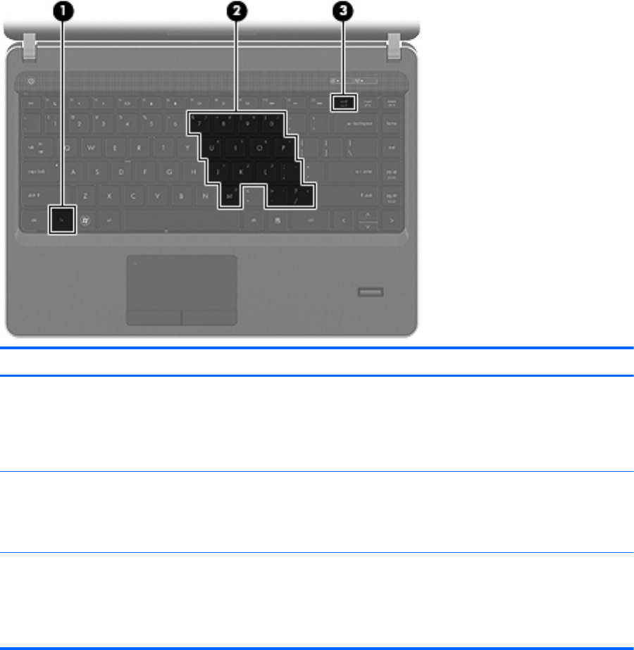 (3) Клавіша num lk Активація та деактивація вбудованої цифрової клавіатури