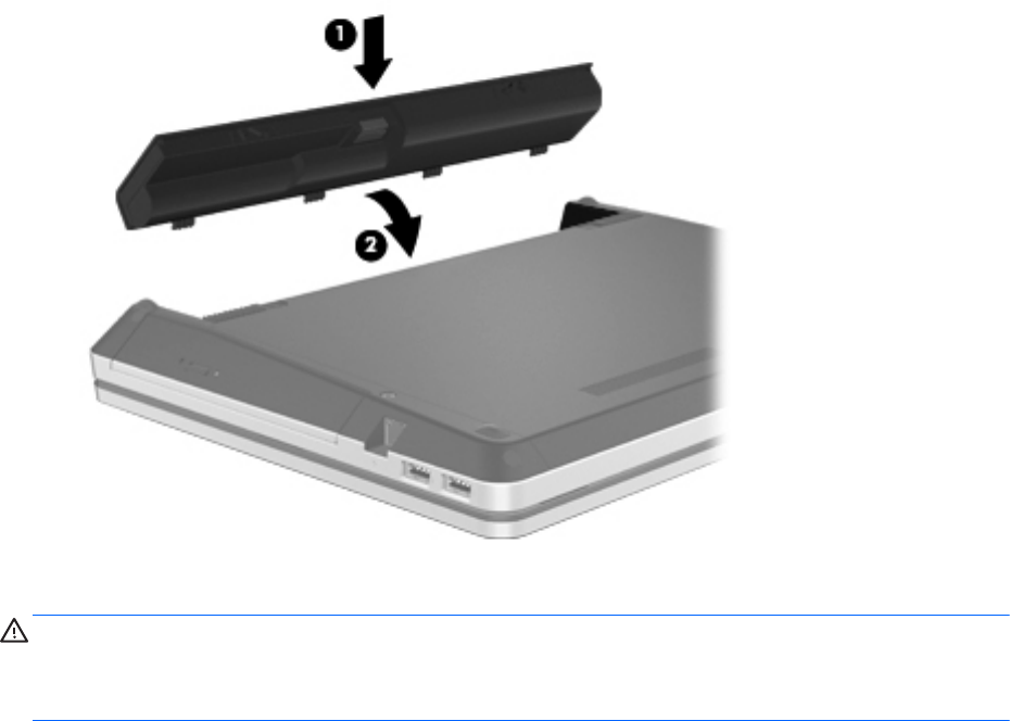 ▲ Вставте батарею (1) у відповідне відділення; вона має зафіксуватися (2).