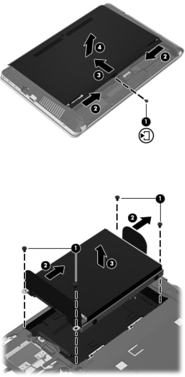 7. Відкрутіть чотири гвинти (1) жорсткого диска.