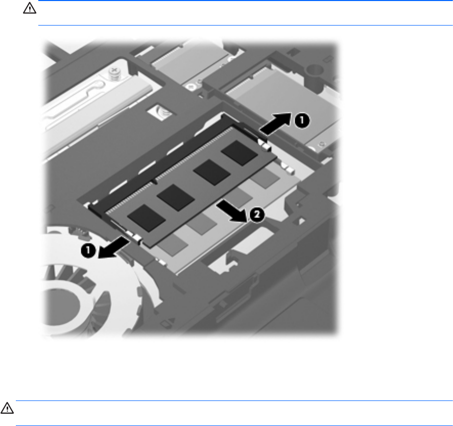 б. Візьміться за краї модуля пам’яті (2) і обережно витягніть його із гнізда.
