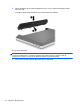 4. Allineare le linguette del coperchio di accesso agli incavi sul computer (1), quindi far scorrere il