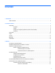 Innehåll 1 Välkommen ...................................................................................................................................................... 1 Hitta information ................................................................................................................................... 2 2 Lära känna datorn ........................................................................................................................................... 3 Ovansidan .............