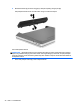1. Geser kait pelepas baterai (1) untuk melepas baterai.