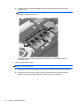 9. Sulygiuokite dangtelio fiksatorius su angomis kompiuteryje (1), tada stumdami dangtelį jį