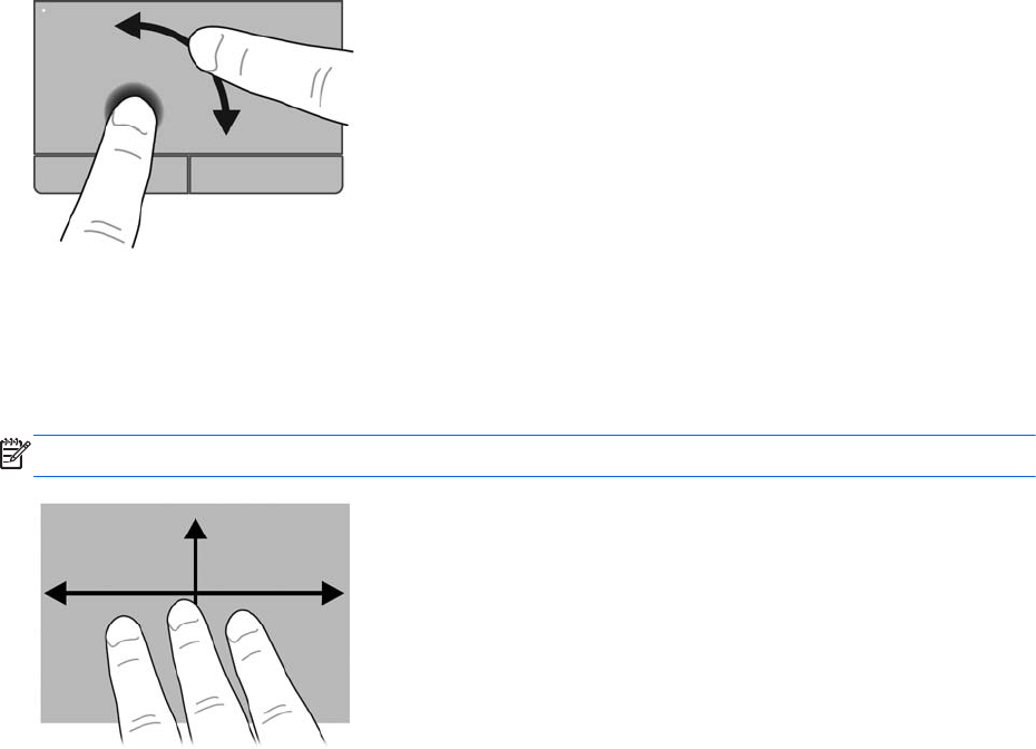 izvršili lak udarac, dodirnite zonu dodirne table pomoću tri prsta pokretom nagore, nadole, nalevo ili