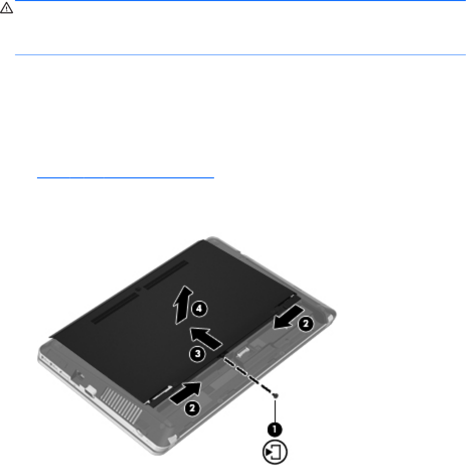 6. 將存取蓋 (3) 向後推,然後將其從電腦卸下 (4)。
