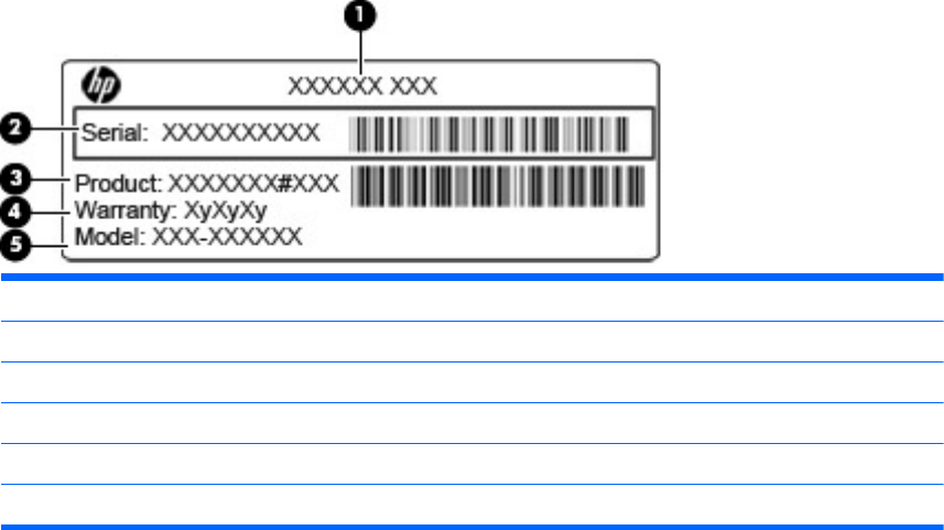 HP 行動寬頻模組序號標籤(僅限特定機型)- 提供 HP 行動寬頻模組的序號。此標籤位於電池插