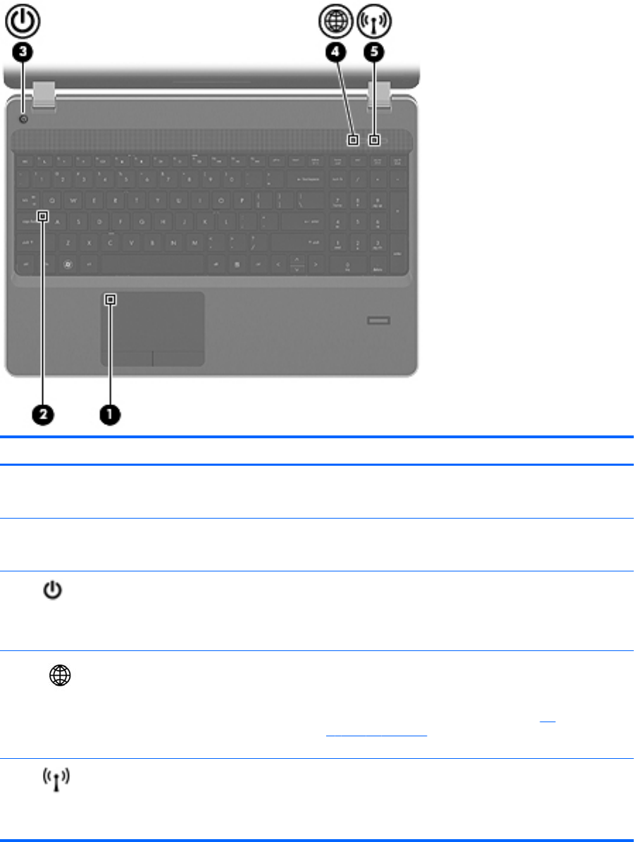(1) Сенсорлы тақта шамы ● Сары: сенсорлы тақта өшірулі.