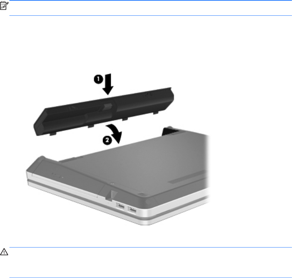 Батареяны (1) батареяның орнына (2) отырғанша енгізіңіз.