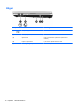 Jack för ljudutgång (hörlurar) Ansluter extra hörlurar, hörsnäckor, ett headset eller TV-