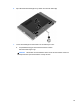 9. Passa in flikarna på åtkomstluckan mot frikopplingsmekanismerna på datorn (1) och skjut sedan