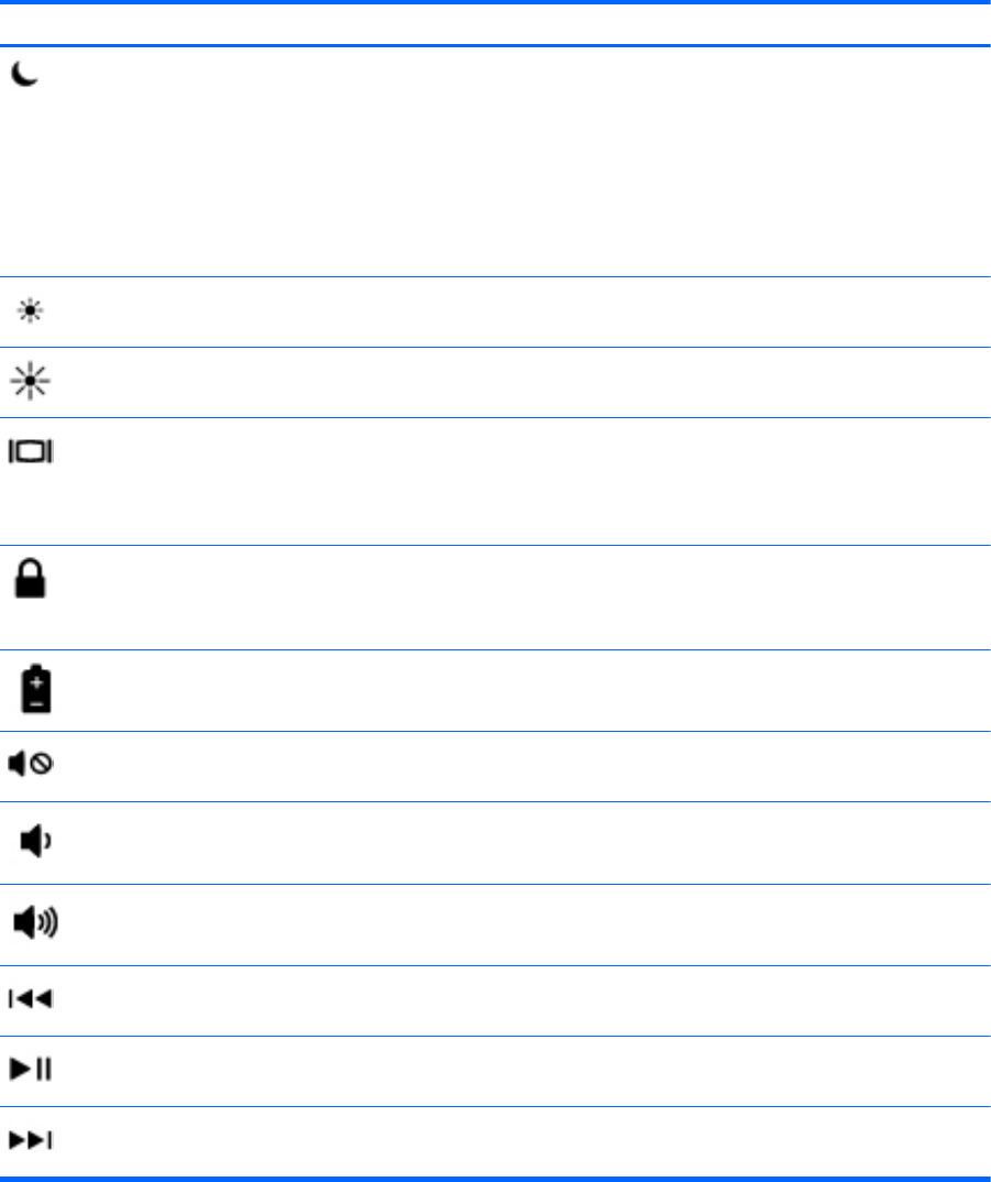 切換連接至系統的顯示器裝置間的螢幕影像。例如,如果已將顯示器連接至電腦,則按下 fn+f4 鍵時,