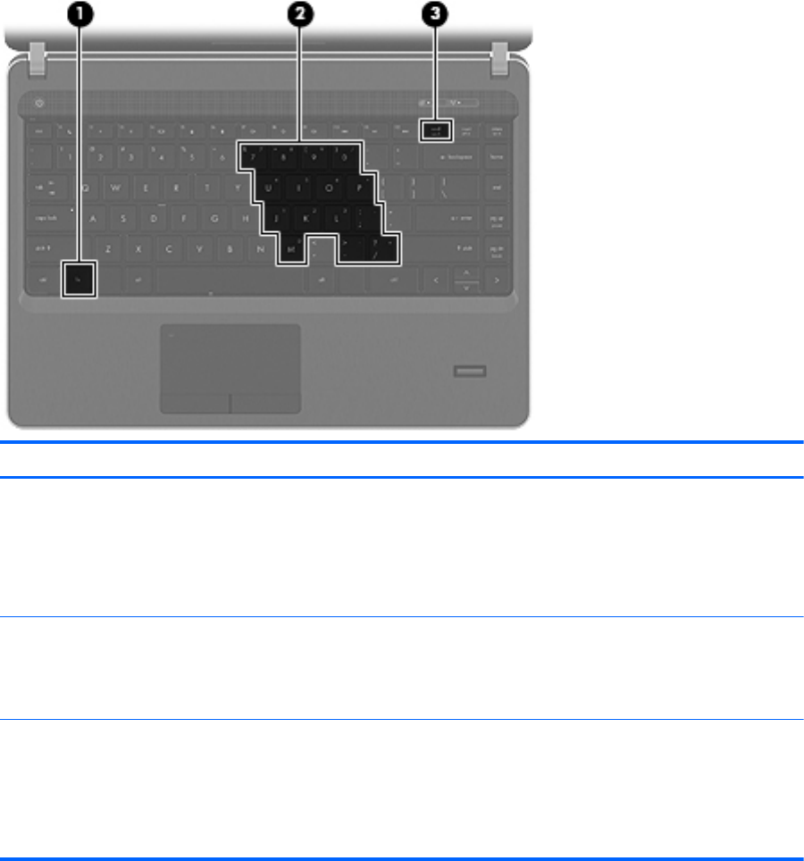 (1) fn-näppäin Ottaa upotetun numeronäppäimistön käyttöön tai poistaa sen