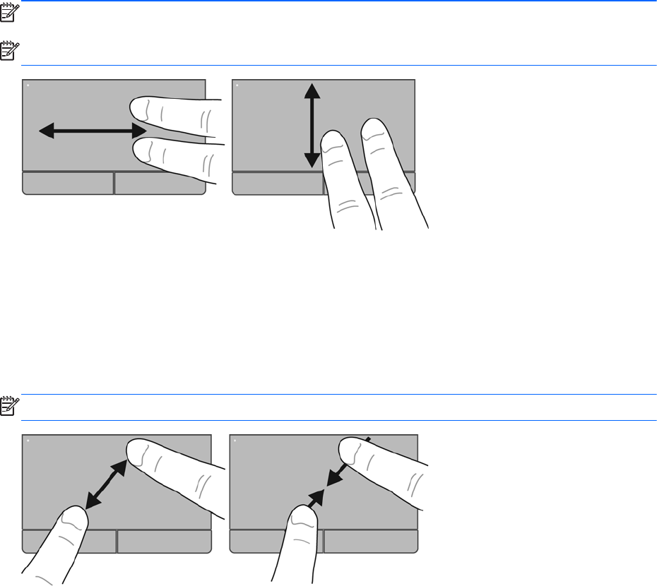vierittää, aseta kaksi sormea hieman toisistaan erilleen kosketusalustalle ja vedä niitä sitten