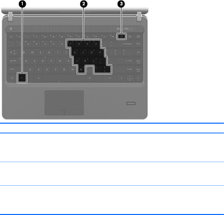 (3) num lk tuşu fn tuşuyla birlikte basıldığında katıştırılmış sayısal tuş takımını