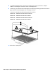 module from the display enclosure, disconnect the cable from the module (1), and then gently