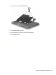 b. Ta tak i kanten på minnemodulen (2) og trekk den forsiktig ut av minnemodulsporet.