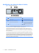 Clavier Figure 1-5 Éléments du clavier Tableau 1-4 Éléments du clavier 1 1 Touches de fonction Ces touches permettent d’effectuer des fonctions spéciales, selon l’application utilisée. 2 Touches d’édition Exemples : Inser, origine, Page précédente, Suppr, Fin et Page suivante. 3 Voyants d’état Indiquent l’état des paramètres de l’ordinateur et du clavier (Verr num, Verr maj et Arrêt défil). 4 Touches numériques Ces touches offrent la même fonction que le clavier numérique d’une calculatrice.