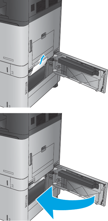 - Устранение замятий в устройстве подачи на 3 x 500 листов и в области правой нижней дверцы