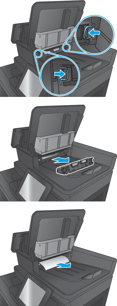 - Устранение замятий в устройстве подачи на 3 x 500 листов и в области правой нижней дверцы