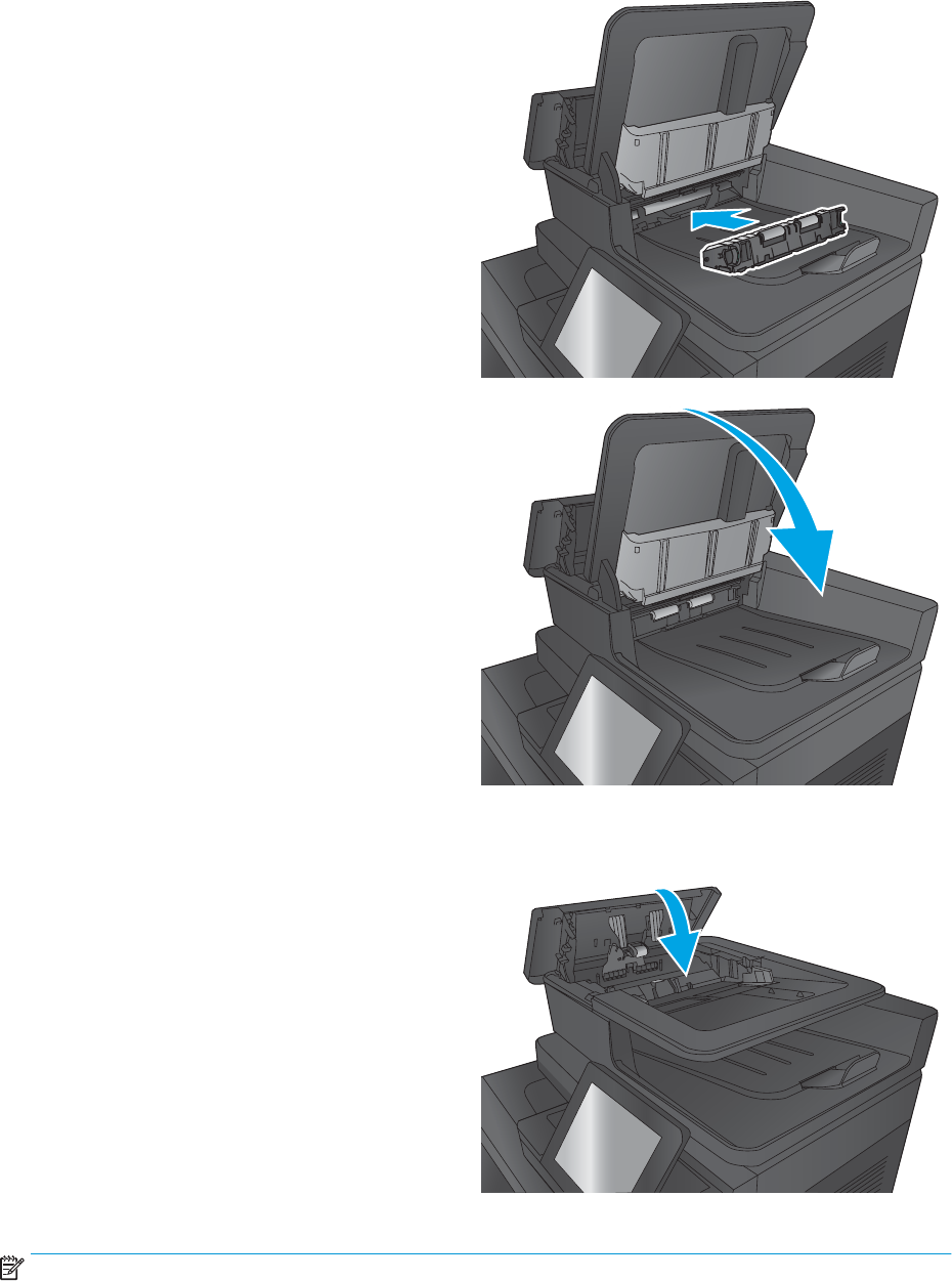 - Очистите ролики подачи и разделительную пластину устройства подачи документов.