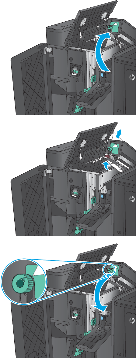 - Устранение замятий в устройстве подачи на 3 x 500 листов и в области правой нижней дверцы