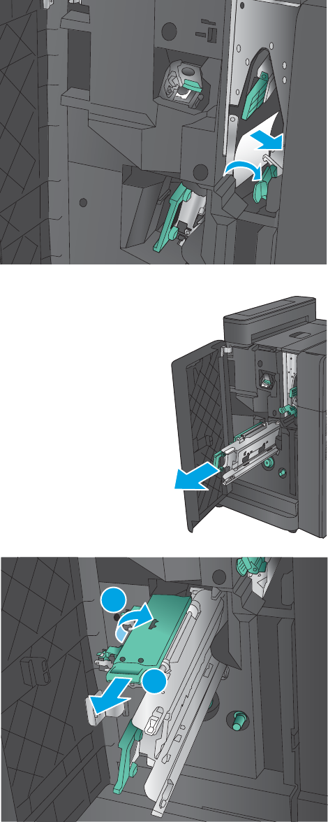 - Устранение замятий в устройстве подачи на 3 x 500 листов и в области правой нижней дверцы