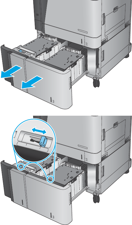 - Устранение замятий в устройстве подачи на 3 x 500 листов и в области правой нижней дверцы