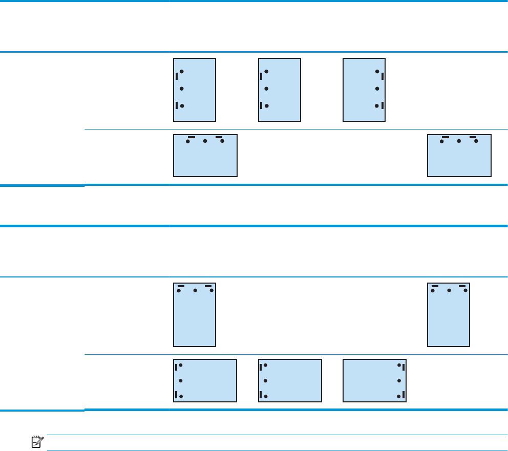 Таблица 4-13 Три отверстия и две скрепка по формату бумаги - Ориентация подачи в лоток длинной стороной