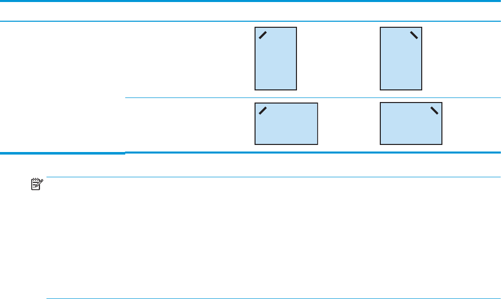 Таблица 5-1 Одна скрепка по формату бумаги - Ориентация подачи в лоток длинной стороной