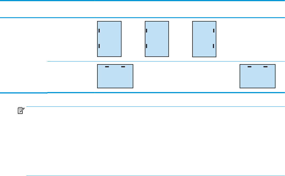 Таблица 5-3 Две скрепки по формату бумаги - Ориентация подачи в лоток длинной стороной