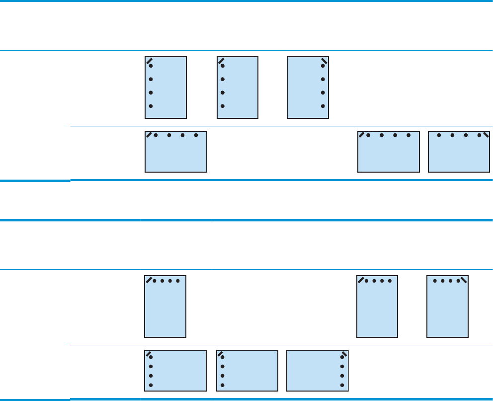 Таблица 5-9 Одна скрепка и четыре отверстия по формату бумаги - Ориентация подачи в лоток длинной стороной