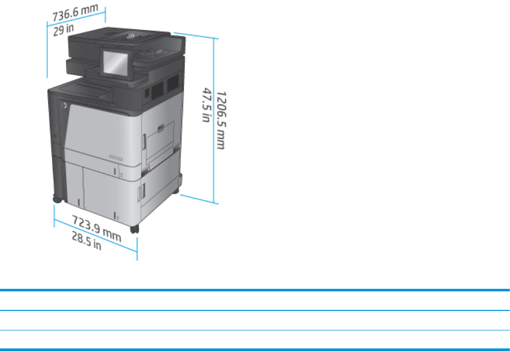 Таблица 1-17 Требования к месту установки устройства со всеми дверцами, лотками и устройствами подачи документов