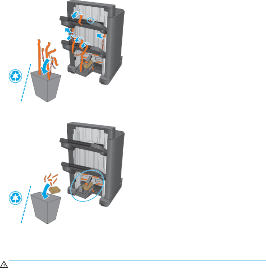 4. Извлеките всю ленту и упаковочный материал из выходного лотка брошюровщика.