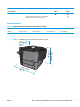 Table 1-1 Product dimensions with all doors closed and with toner cartridge