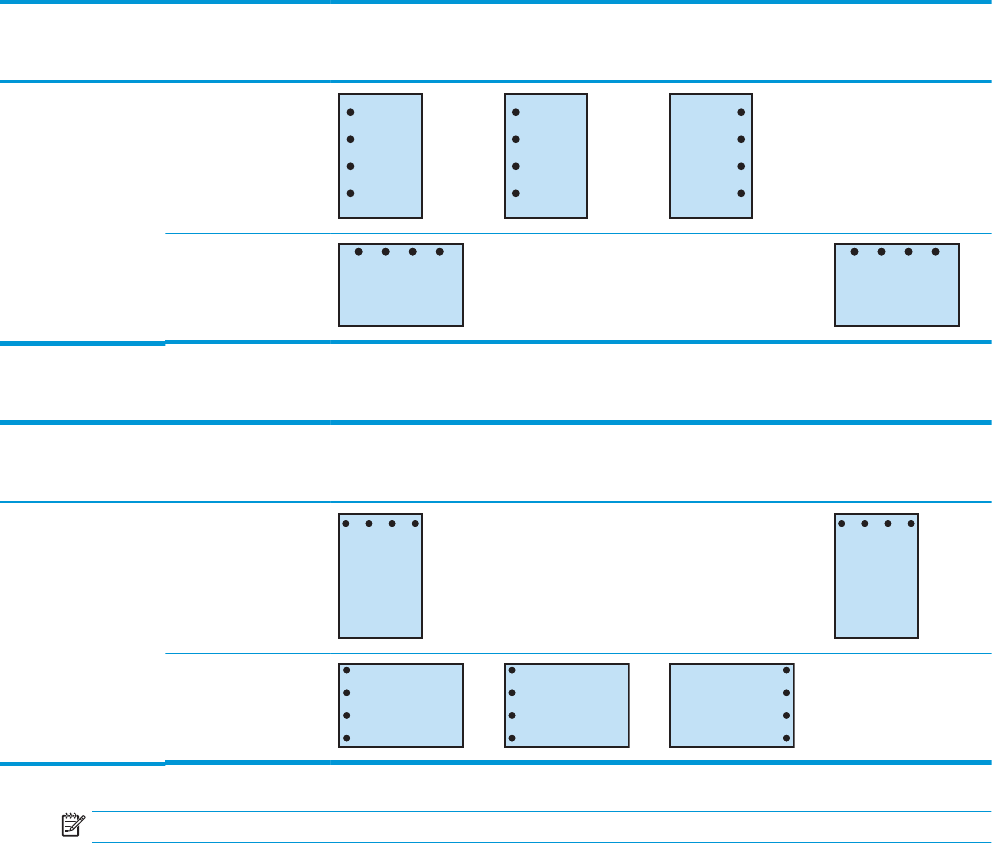 Tabulka 4-5 Možnosti děrování se čtyřmi otvory podle formátu papíru – orientace plnění zásobníku delší stranou