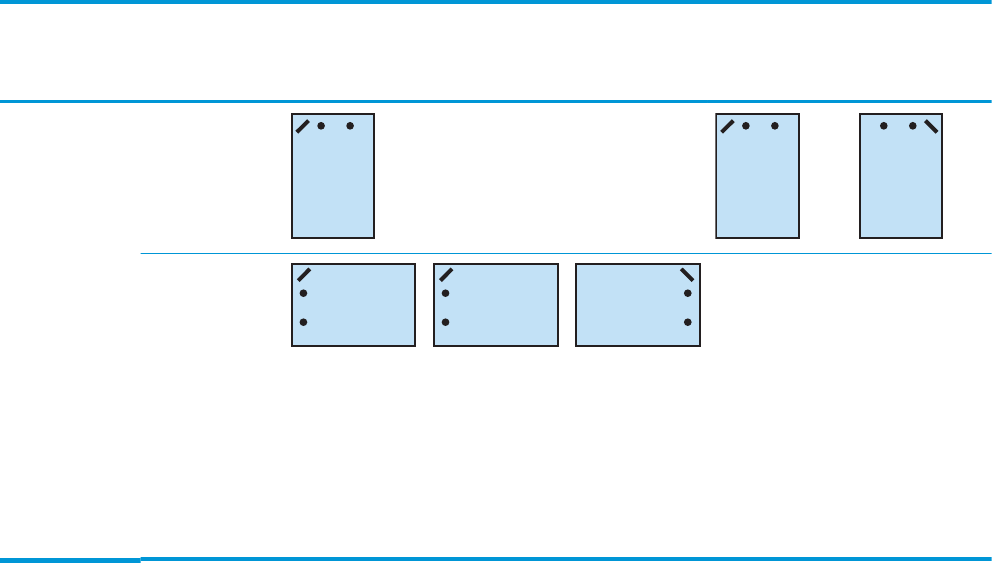 Tabulka 4-8 Možnosti děrování se dvěma otvory a sešívání podle formátu papíru – orientace plnění zásobníku kratší stranou