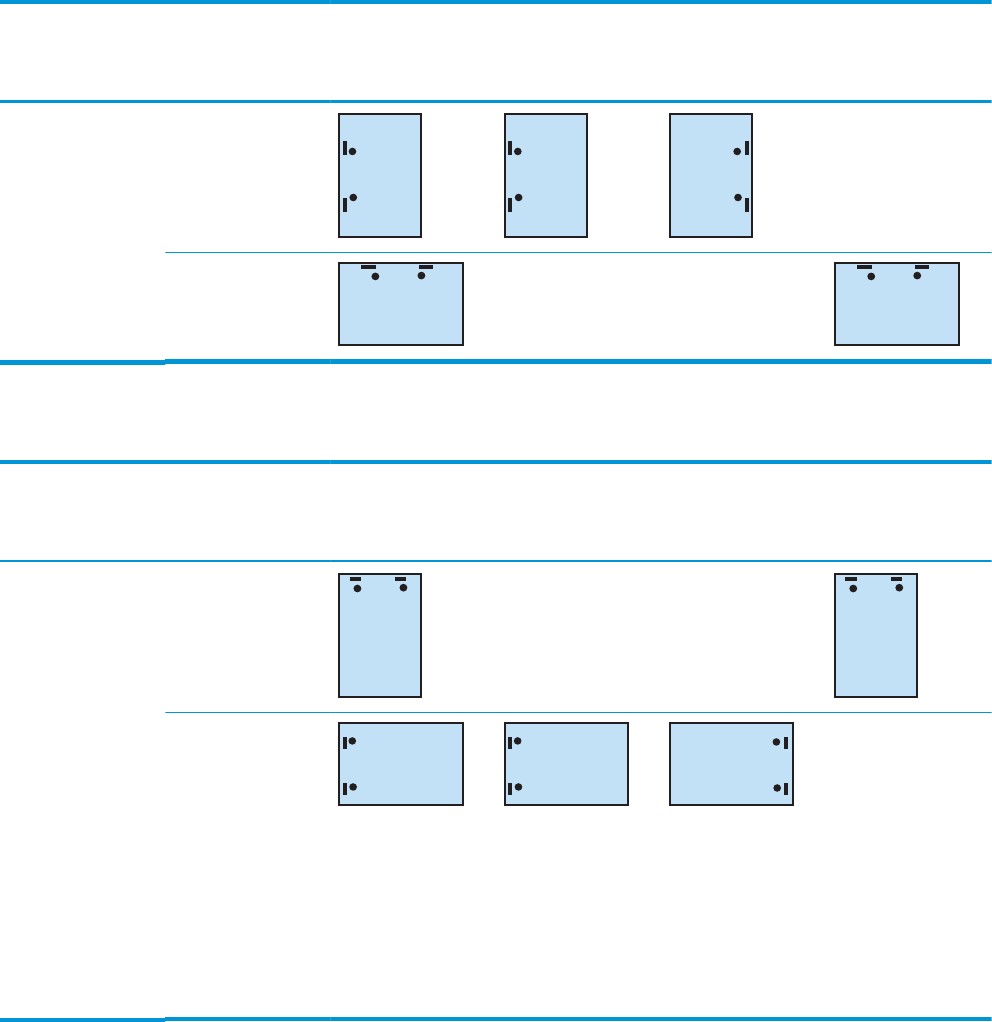 Tabulka 4-10 Možnosti děrování se dvěma otvory a dvěma svorkami podle formátu papíru – orientace plnění zásobníku kratší
