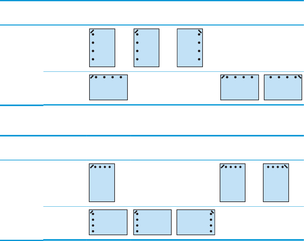 Tabulka 5-9 Možnosti sešívání s jednou svorkou a děrování se čtyřmi otvory podle formátu papíru – orientace plnění zásobníku