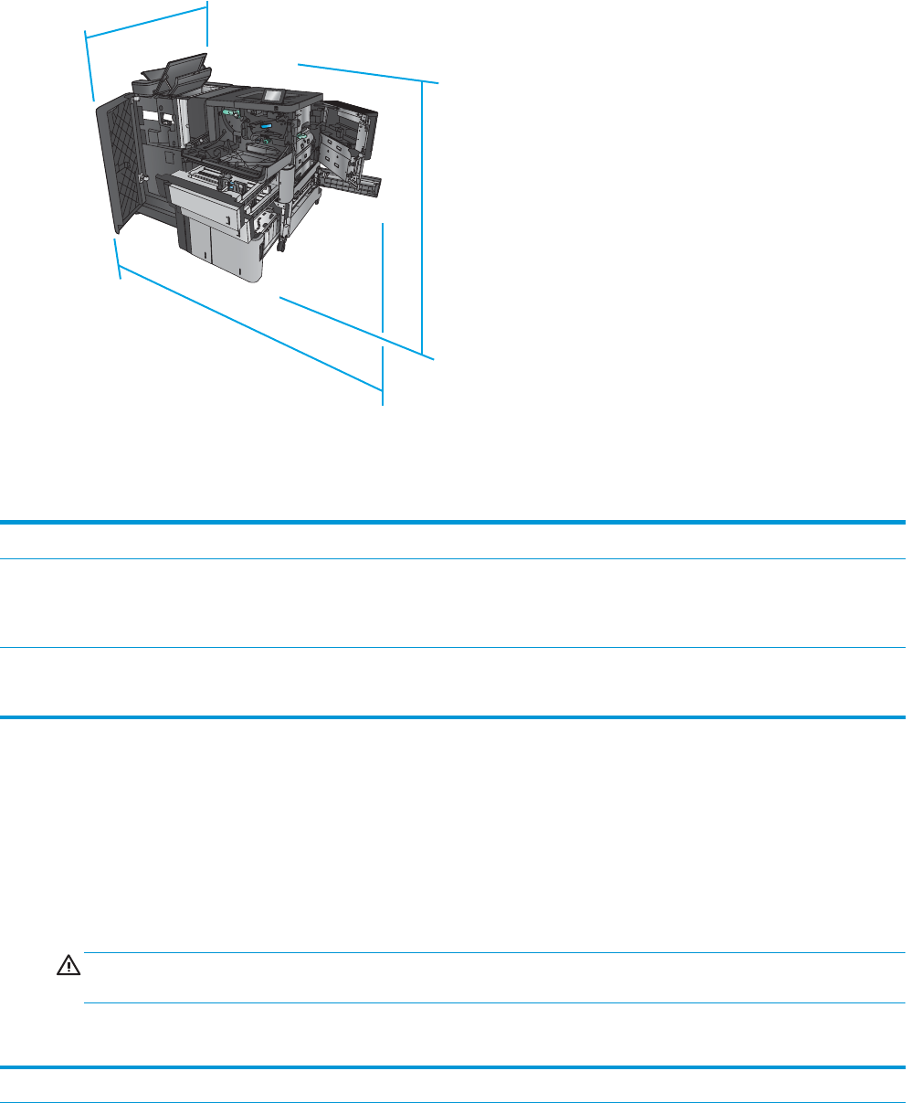 Obrázek 1-6 Prostorové požadavky modelu M806x+, příslušenství a děrovače s plně otevřenými dvířky,