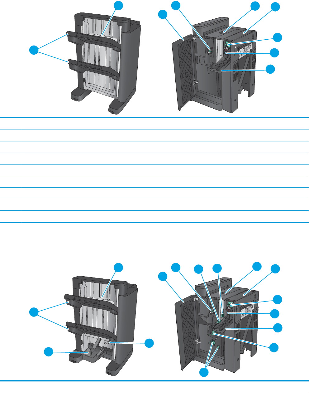 HP LaserJet Enterprise M806, HP LaserJet Enterprise flow MFP M830, HP Color LaserJet Enterprise M855, and HP Color LaserJet Enterprise flow MFP M880 finishing accessories and paper handling - Uživatelská příručka